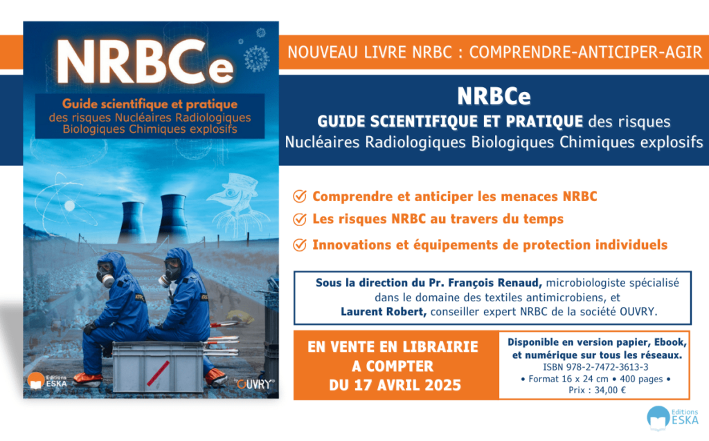 Le groupe Ouvry présente son dernier livre aux Éditions ESKA, rédigé sous la direction de son conseiller scientifique, le Professeur François Renaud : « NRBCe, Guide scientifique et pratique sur les risques Nucléaires, Radiologiques, Biologiques et Chimiques explosifs ». L’objectif est de comprendre et anticiper les menaces nucléaires, radiologiques, biologiques et chimiques (NRBC). Quatre-vingt-dix articles ont été consacrés à l’étude de ces risques méconnus du grand public.