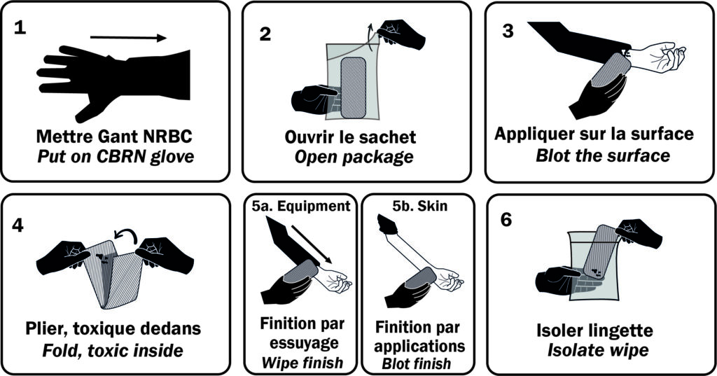 Lingette de décontamination NRBC d’urgence conçue pour la décontamination de surfaces, d’équipements et de la peau.